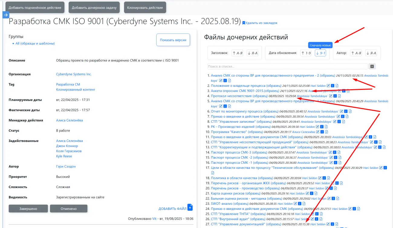 • Файлы теперь можно сортировать по заголовку файла (алфавитный порядок), дате обновления (порядок датирования) и по автору (алфавитный порядок). Кроме того теперь работает поиск по заголовку файла с автоматической обработкой запроса - в блоке отображения файлов остаются только те файлы, в заголовках которых содержится сочетание символов , введенных в строке поиска.